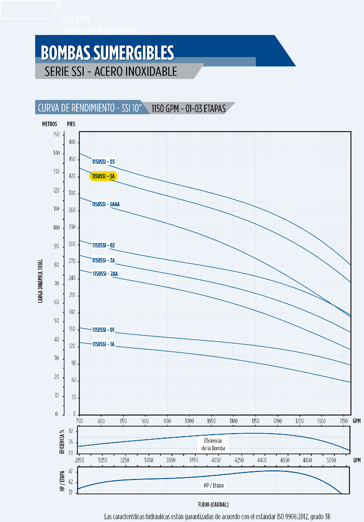 Cuerpo de bomba (sin motor) para pozo QNom:1150GPM 125HP 1150SSI125F106-3A86, Hest:92m DiaExt:10″ DiamDesc:6″ plg, Etapas: 3A, Serie SSI – 10″ Qmax:1277GPM Qmin: 925GPM 132HPmax, Hmax: 120m Hmin:88m, para acoplar a motor de 8″PLG, marca Franklin Electric Serie SSI – 10″