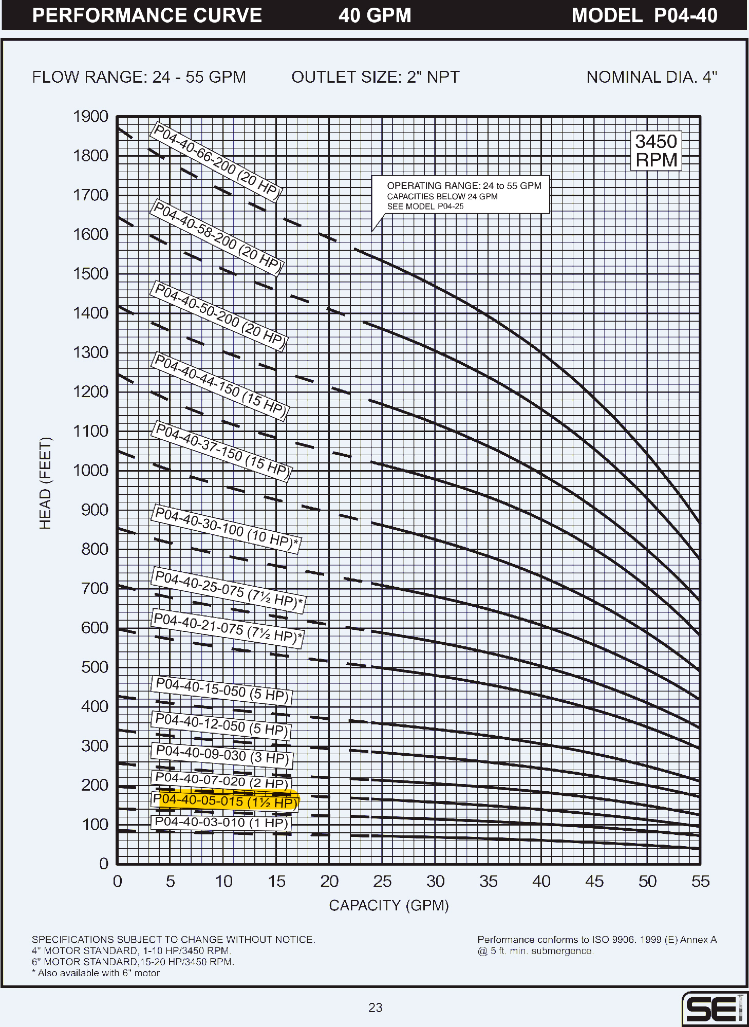 Bomba para pozo 1 5HP 2in SEI P04-40-05-015