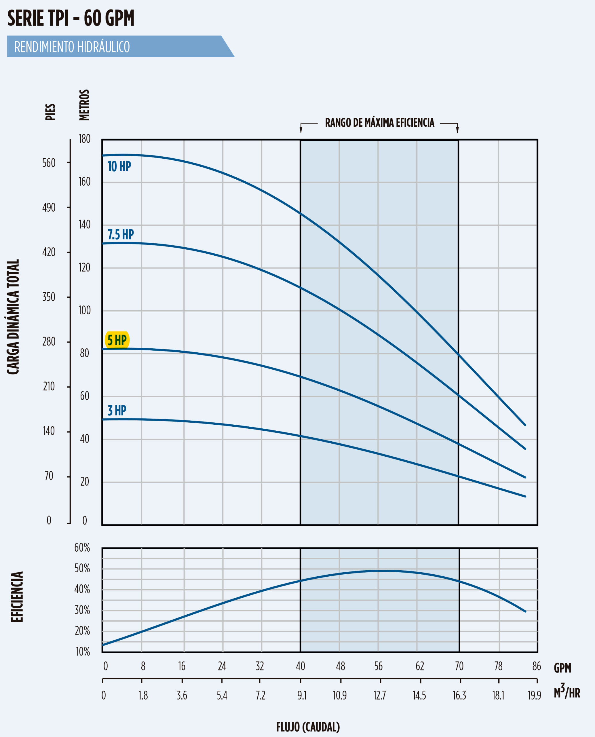 Rendimientos de 35, 45, 60 y 90 GPM para aplicaciones con diametros de 4″