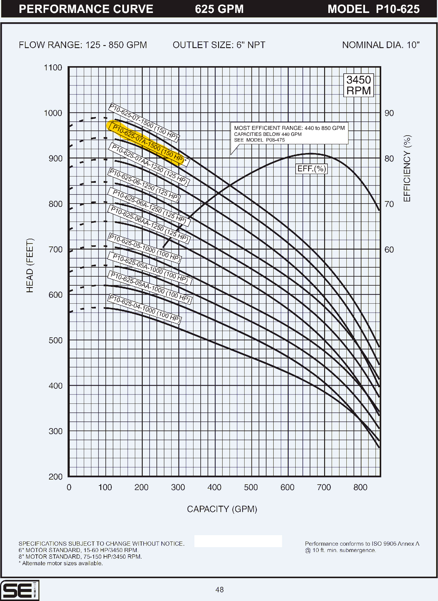 150HP 625GPM Bomba sumergible SEI P10-625-07A-1500 CPE