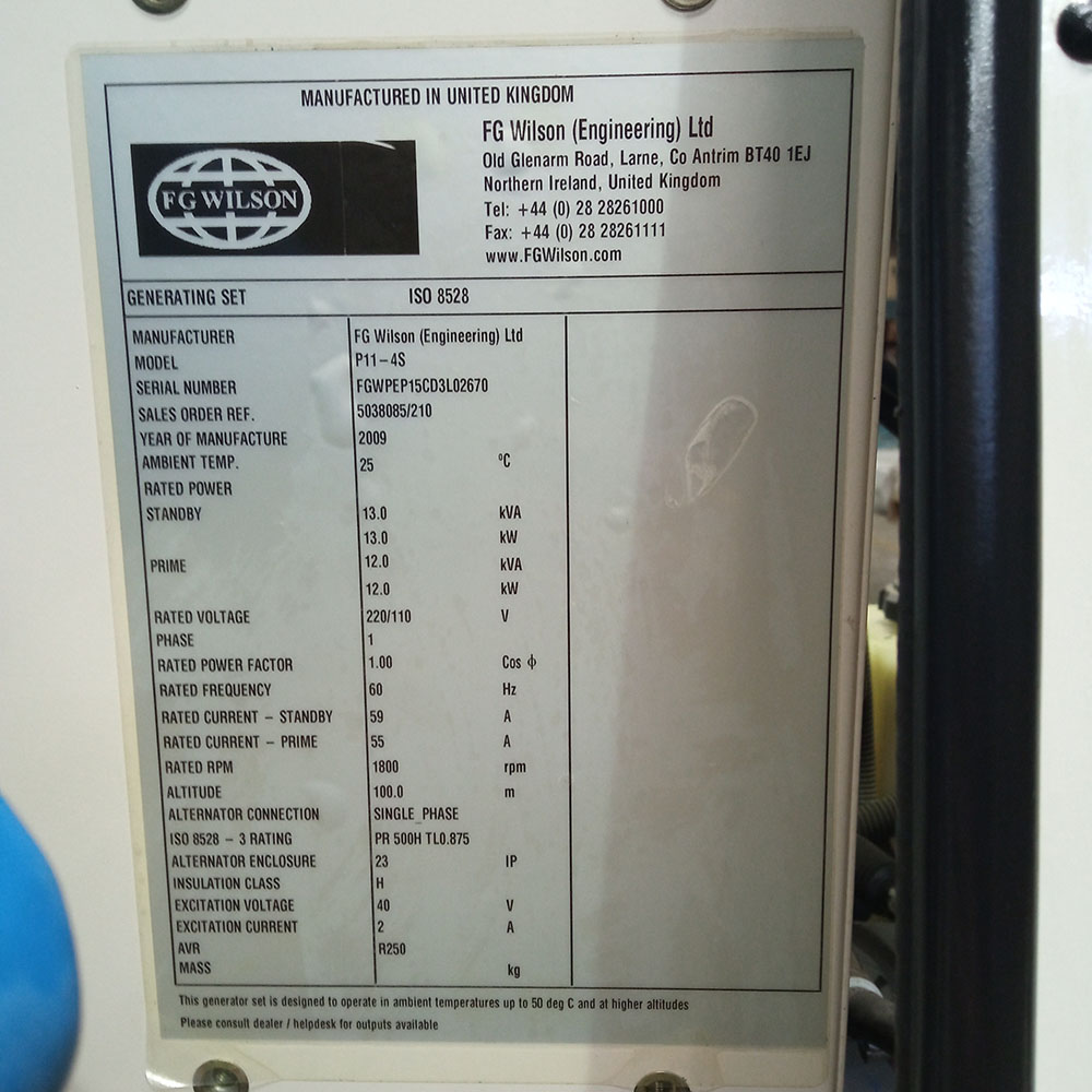 Generador a gasoil 13KVA FGWilson P11-4S SA