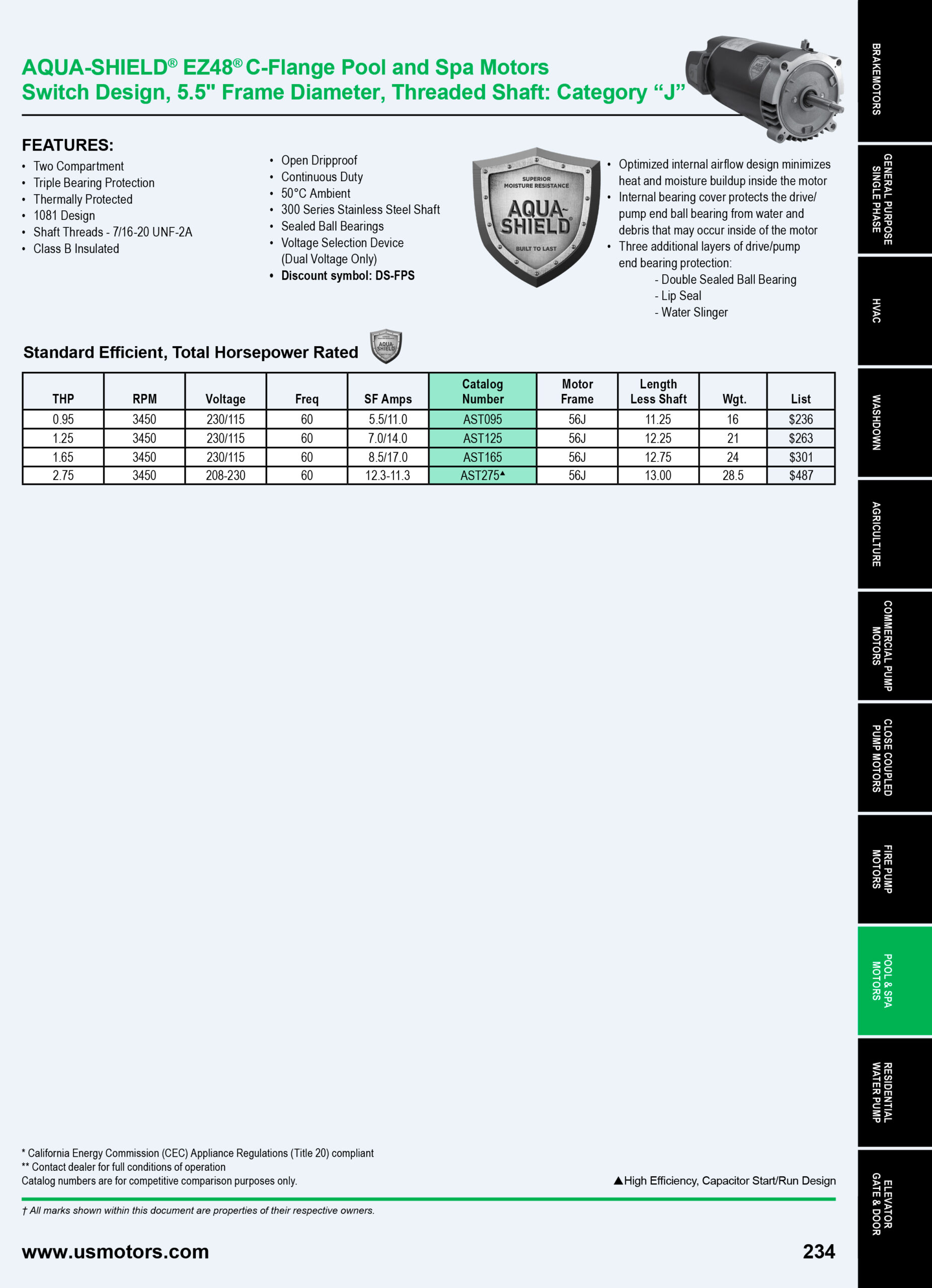 0.75HP 3PH 230V DOL Motor electrico USmotor AST095 CPE
