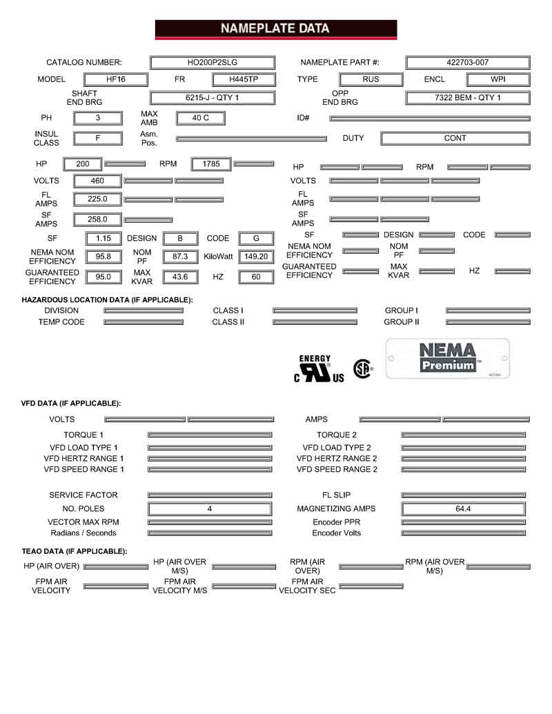 Motor vertical eje hueco Catalog #: HO200P2SLG – 200 HP – WPI – 1785 RPM, Model: HF16 Vertical Hollow Shaft motor. Motor vertical de eje hueco para bombas tipo turbina vertical eje hueco