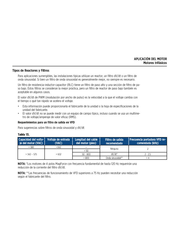 Se requiere un flujo mínimo de 0.5 pies por segundo para motores de 6” y 8”.